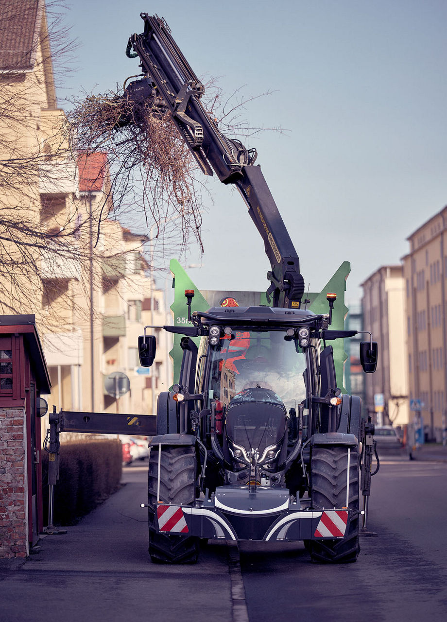 Han valde en Valtra N155 Unlimited med skogshytt, takfönstret Skyview, i metallic svart och med svarta fälgar, vilket gör att färgen passar bra in i mixen av övriga fordon i maskinparken. Även om traktorn inhandlades för att främst arbeta inom arboristverksamhet har den redan testats till andra uppgifter. Bland annat sattes den in under det stora snökaoset på E22 i januari 2024.